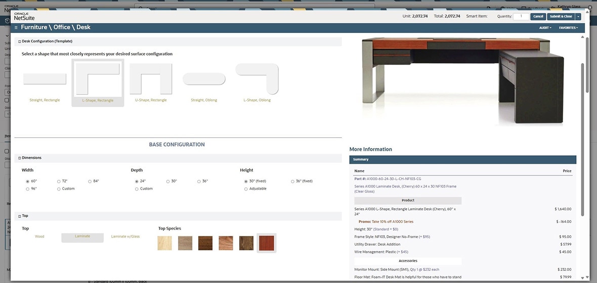 NetSuite’s configure, price, quote (CPQ) platform works seamlessly with NetSuite ERP, CRM and ecommerce solutions, providing a front-end sales solution that is specifically designed to help internal and external sales reps quote and sell configurable products and services quickly and easily.