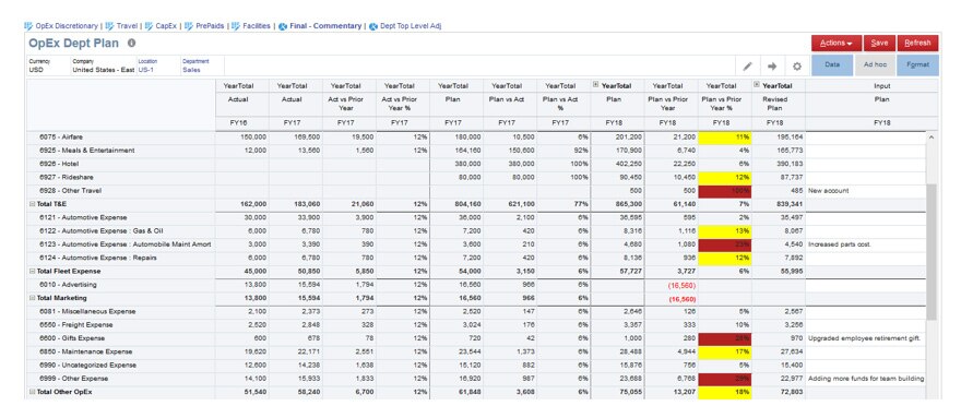 Drill across budget, forecast and actuals to see the impact on business performance.