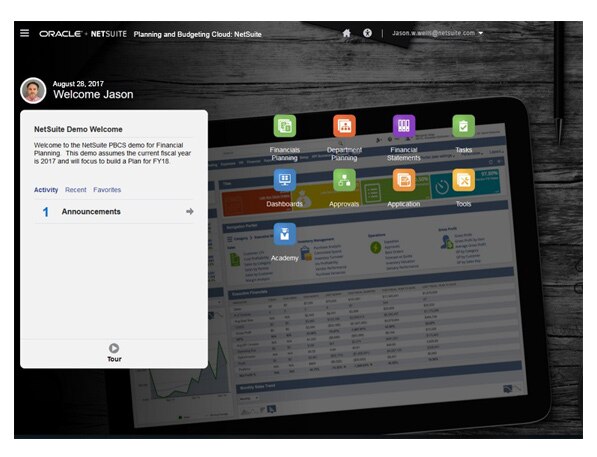 The mobile-ready and intuitive interface of Oracle NetSuite PBCS combines task lists, instructions, dashboards and graphical reports.