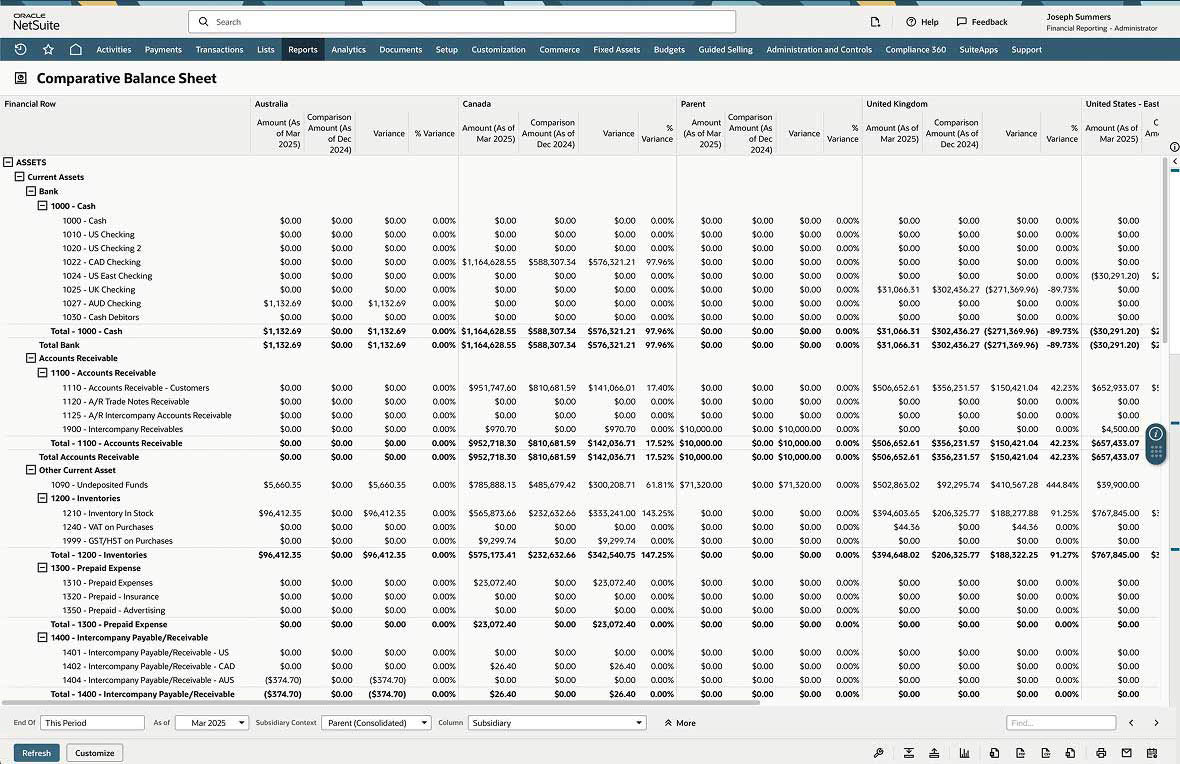 Multi-entity and multi-book accounting capabilities, combined with real-time data, make consolidating and reporting financial details extremely easy. NetSuite combines a shared dataset with the ability to create custom charts of accounts at the subsidiary level to ensure transactions recorded locally are also posted — simultaneously — to the correct parent account. This eliminates the need to normalise and match data and allows for more accurate and timely consolidated reporting.