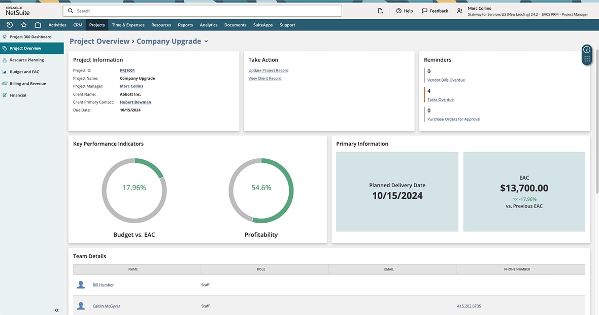 NetSuite gave us the ability to have not only the SuiteProjects module but also a manufacturing module, all live in one ERP.