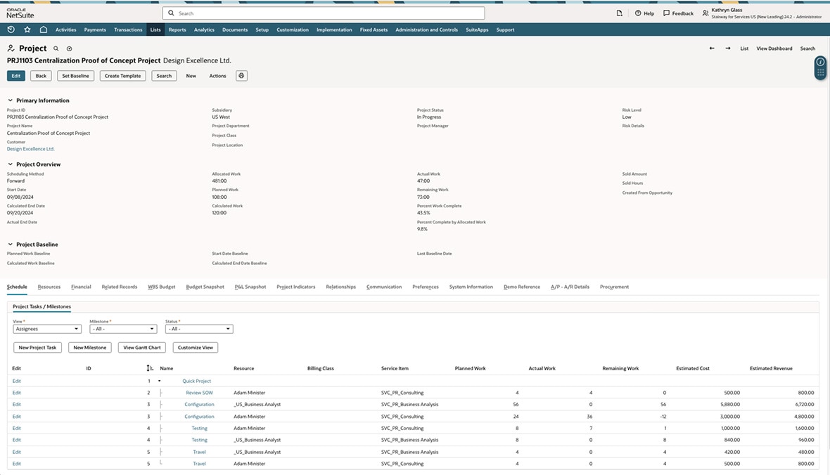 NetSuite project management seamlessly integrates with NetSuite accounting, allowing you to monitor and manage revenues, expenses, billing and profitability over the lifetime of a project.